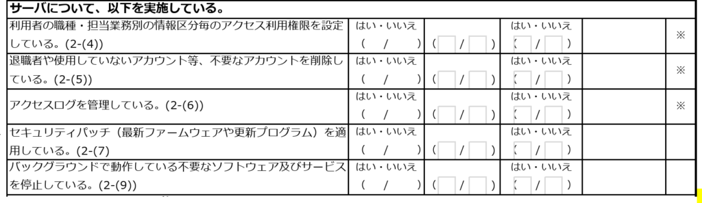 ②医療情報システムがない場合、チェックリストを使用しなくとも以下の情報セキュリティ管理は実施しておくべきであろう