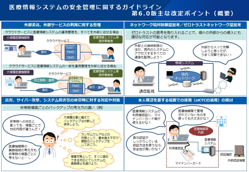 見直しされた「医療情報システムの安全管理に関するガイドライン第6.0 版」が2024に策定されている